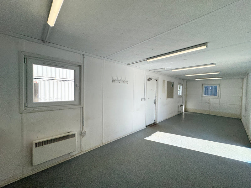 This 32×10 ft anti-vandal portable cabin is a reduced-price, un-refurbished unit offered in working condition. It is suitable for buyers seeking a functional canteen or office building without the cost of a newly refurbished unit.